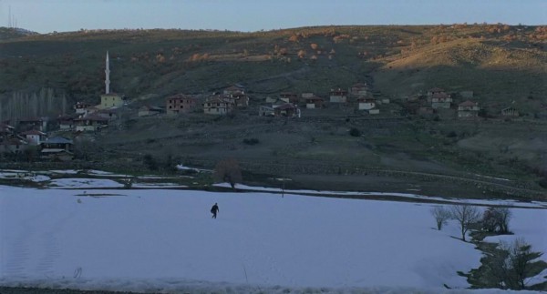 Em abordagens opostas, mas ambas contemplativas, duas formas de aproximar o distante: na cena de abertura (acima), um plano imóvel mostra Yusuf atravessando o cenário; na cena final (abaixo), a imagem fecha lentamente sobre a face de Mahmut. No primeiro caso, a cena é calcada na ação física do jovem Yusuf; no segundo, a ênfase é na interioridade do melancólico Mahmut.Esculpir o silêncio