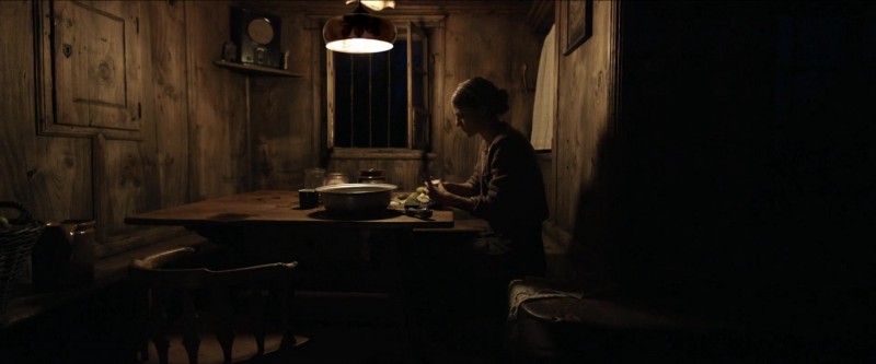 Além de lançar mão da arte e da simbologia cristãs, que formam o ambiente cultural e religioso daquela comunidade, Malick combina elementos visuais e sonoros que contribuem para a densidade narrativa. Um exemplo está já nas primeiras cenas do filme (após as imagens de arquivo do nazismo), que mostram foices sendo utilizadas e amoladas pelo casal, sugerindo a presença agourenta da morte naquele ambiente bucólico. Mais adiante, Fani levanta os olhos para o céu — gesto que já vimos em tantos personagens dos filmes do diretor —, mas em vez do vácuo existencial ou da busca pelo divino há o zumbido sinistro dos aviões de guerra que cruzam os céus.