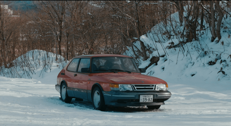 Algo desse indizível irradia-se em muitas imagens de Drive My Car — silentes, estranhas, comoventes —, como de Misaki observando Kafuku pelo retrovisor, de Kafuku observando a esposa pelo reflexo do espelho, da chuva que aguarda no fim do túnel, dos cigarros acesos lado a lado no ar da noite, do sol que surge suavemente refletido na neve e que parece dar expressão ao “olhar” do Saab, ou de como o zumbido contínuo do motor, recorrente no registro sonoro, silencia ao trafegar na paisagem nevada, reforçando a sua atmosfera enigmática e impenetrável.